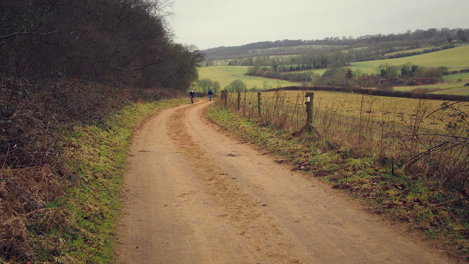 Once again lured in by the idea of a morning swim we decided upon Frensham Pond in the Southwest as our destination. The big issue of starting in London is that the first 20 miles or so are boring main roads or dual carriageways, add in the oppressive grey sky and constant drizzle it wasn't the most exciting departure. Keen to start enjoying ourselves, somewhere between Leatherhead and Guilford we switched tarmac for dirt and went off road. Ben had the perfect set up with fat tyres but myself and Mark were just spinning our wheels in mud. Trudging up the muddy hills we had a quick chat with a local who exclaimed "brilliant!" when we said we didn't know where we were or where we would sleep. On his recommendation we adjusted our destination to a local pub 4 miles away.